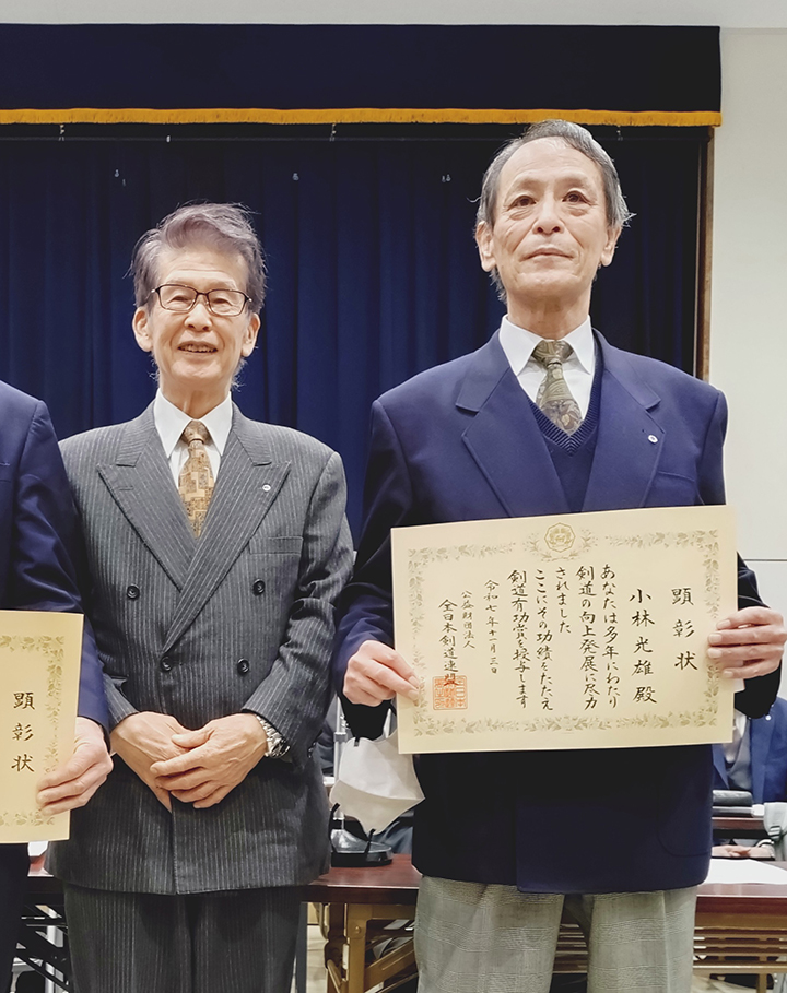 全日本剣道連盟から小林光男先生に剣道有功賞が授与されました。